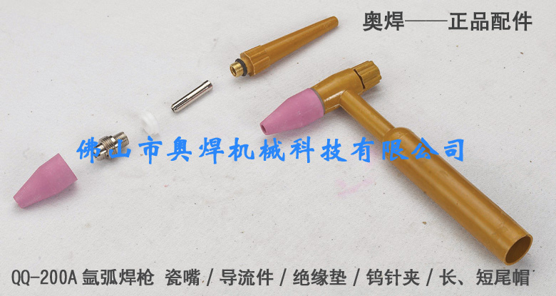 QQ-200A焊炬、焊槍頭是QQ-200A氬弧焊槍主要組成部分黃槍把(黃槍頭),損壞率低,易損件為瓷咀、鎢針夾等小附件。